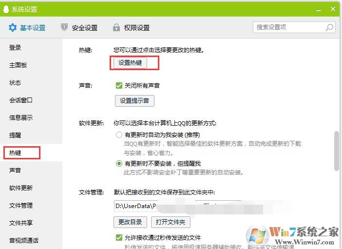 2、選擇左側(cè)的“熱鍵”,再點(diǎn)擊右側(cè)的設(shè)置熱鍵;