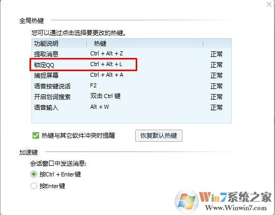 從上面我們可以看到鎖定QQ的快捷鍵是 CTRL+ALT+L