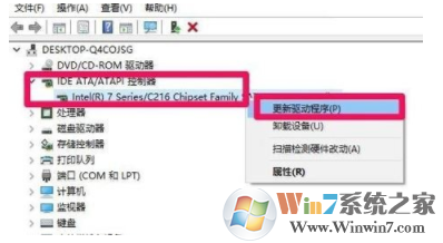 3、在設(shè)備管理器中展開(kāi)IDE ATA ATAPI控制器,接著右鍵欄目下系統(tǒng)自帶的控制器并選擇更新驅(qū)動(dòng)程序,選擇“瀏覽計(jì)算機(jī)以查找計(jì)算機(jī)驅(qū)動(dòng)軟件”,如圖: