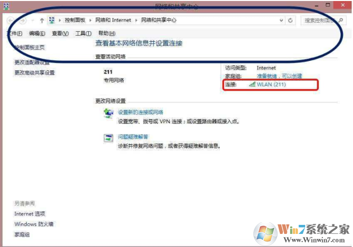也可以:控制面板——網(wǎng)絡(luò)和 Internet——網(wǎng)絡(luò)和共享中心