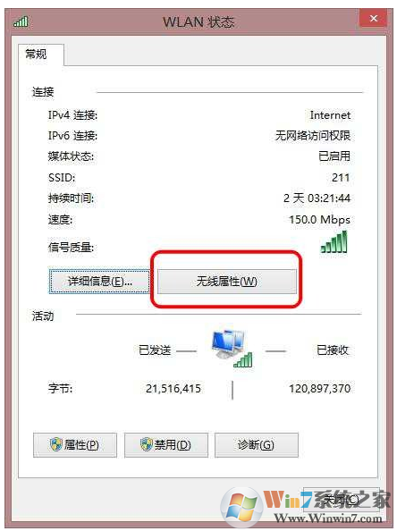 ③單擊無(wú)線(xiàn)屬性,打開(kāi)連接網(wǎng)絡(luò)的無(wú)線(xiàn)屬性