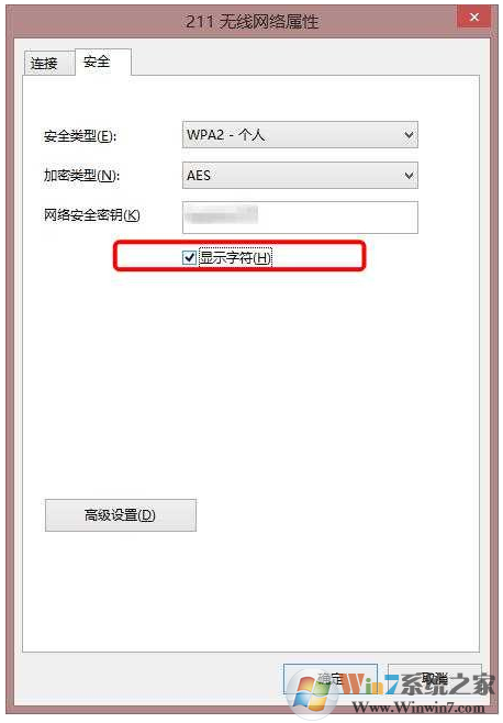⑤該選項(xiàng)卡中點(diǎn)擊顯示字符選項(xiàng),這時(shí)就自動(dòng)顯示出WiFi密碼了