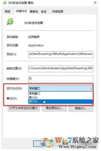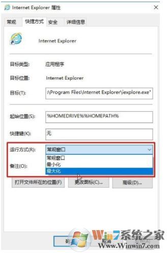 2、將【運行方式】框中的選項選擇“最大化”,點擊應(yīng)用并確定即可。