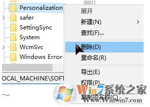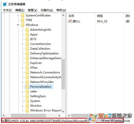 2、在注冊表中依次定位:HKEY_LOCAL_MACHINE\SOFTWARE\Policies\Microsoft\Windows\Personalization ;