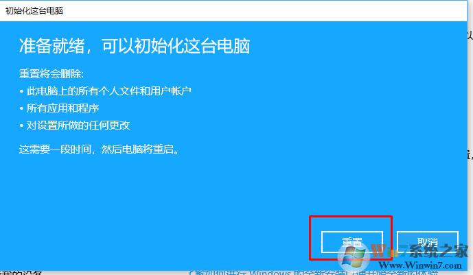 8、點(diǎn)擊重置后,我們只需要等待重置完成即可。