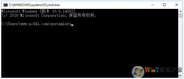 第二步:然后在打開的CMD命令操作窗口鍵入命令:systeminfo 完成后按回車鍵(Enter)運行,如圖所示。