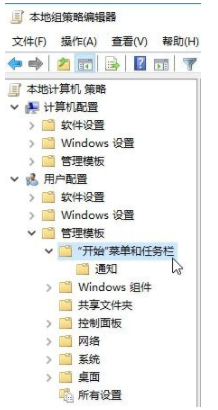 2、在組策略中依次展開(kāi)“用戶配置—管理模塊—開(kāi)始菜單和任務(wù)欄”;
