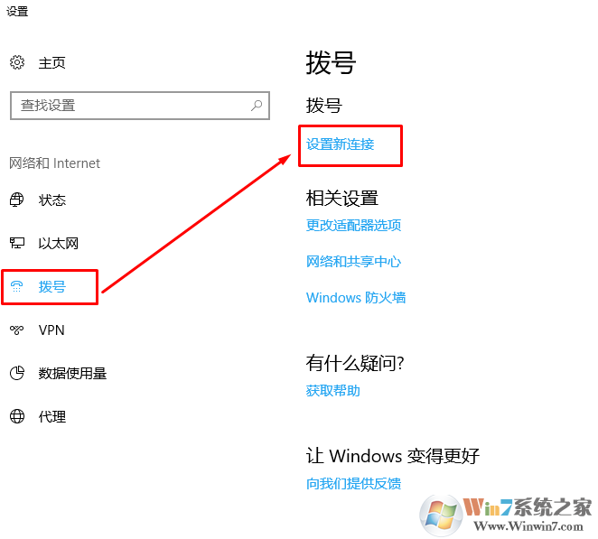 2、選擇撥號(hào)連接----設(shè)置新的連接。
