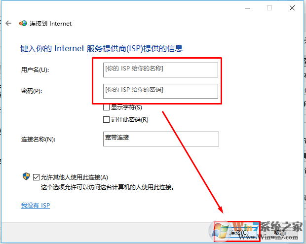 5、輸入寬帶的用戶名和密碼點(diǎn)擊連接即可。