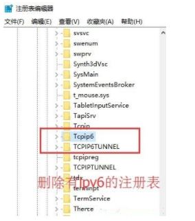 4、在下面分別刪除Tcpip6、TCPIP6TUNNEL ;
