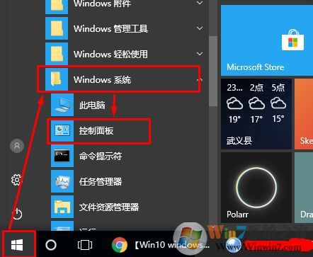 1、打開開始菜單在windows系統(tǒng)文件下選擇控制面板;