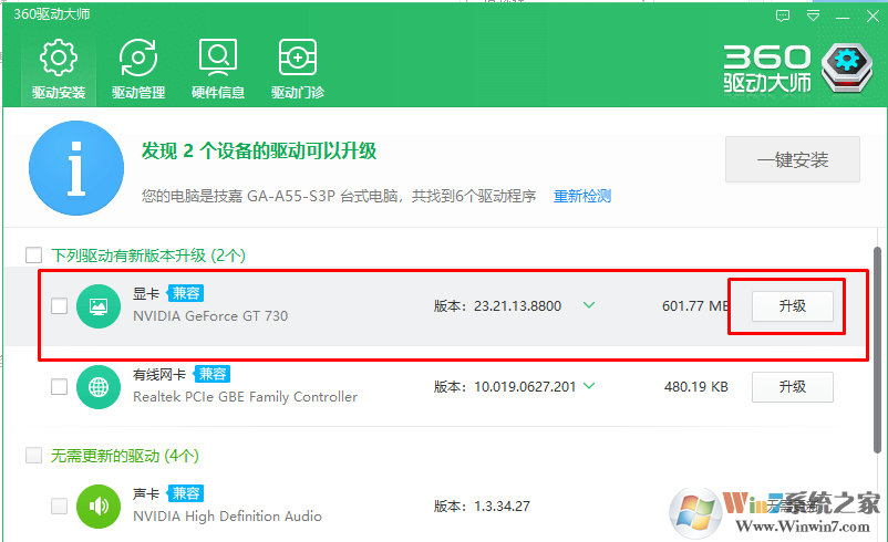 一、因?yàn)橄到y(tǒng)更新了,所以相應(yīng)的顯卡驅(qū)動(dòng)程序也需要更新。我們可以使用360驅(qū)動(dòng)大師或者是驅(qū)動(dòng)精靈更新。