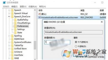 3、在右側(cè)空白單擊右鍵,選擇【新建】-【DWORD(32位)值】,將該值命名為VoiceActivationEnableAboveLockscreen的,將其值設(shè)置為【1】即可。