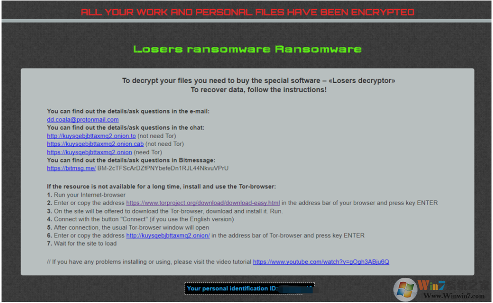 昨天有win10系統(tǒng)用戶(hù)發(fā)現(xiàn)中了一種名為losers 的病毒。該病毒會(huì)將所有的文件后綴名改為.losers并將你的火墻完全關(guān)閉不可用,而且每個(gè)被鎖的文件夾多了個(gè)靜態(tài)頁(yè)面(如下圖)。有的用戶(hù)比較幸運(yùn)下載了360及時(shí)的阻止了它的工作,只是有部分系統(tǒng)文件被加密然后移動(dòng)硬盤(pán)部分文件被加密(除了部分文件以及所有的音樂(lè)無(wú)法被完全加密),之后他所提供的Tor瀏覽器中國(guó)大陸是不可用的,它提供的網(wǎng)站VPN是翻不過(guò)去的,即使你想要交贖金也交不了。這很尷尬啊。那么遇見(jiàn)這種情況我們?cè)撊绾谓鉀Q呢?
