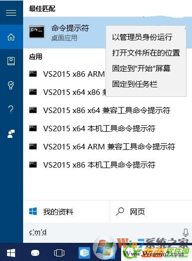 1、在開(kāi)始菜單或任務(wù)欄搜索框中輸入CMD,在搜索結(jié)果中找到命令提示符,右鍵單擊,選擇以管理員身份運(yùn)行。