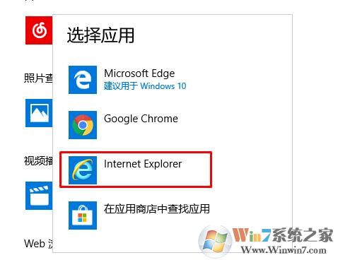 4、點擊后選擇Internet Explorer