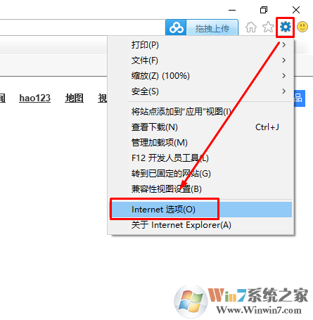 1、打開IE瀏覽器→在右上角點擊【工具】→ 【Internet 選項】;