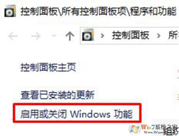 2、在左側(cè)點擊【啟用或關(guān)閉Windows 功能】;