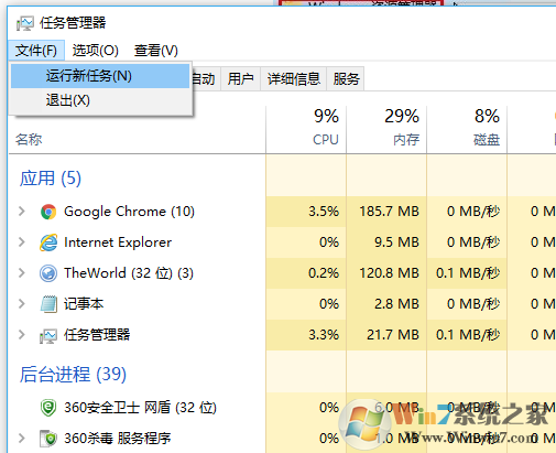 1、在任務(wù)管理點擊“文件” - “運行新任務(wù)”;