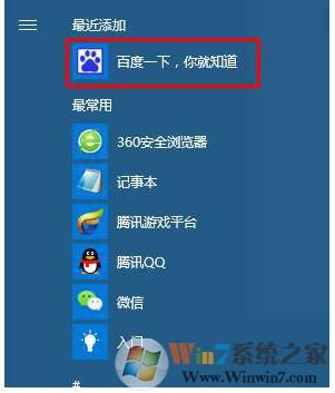 3、添加完成后,我們打開(kāi)開(kāi)始菜單,就可以看到網(wǎng)站了,這樣我們?yōu)g覽起來(lái)會(huì)非常的方便。