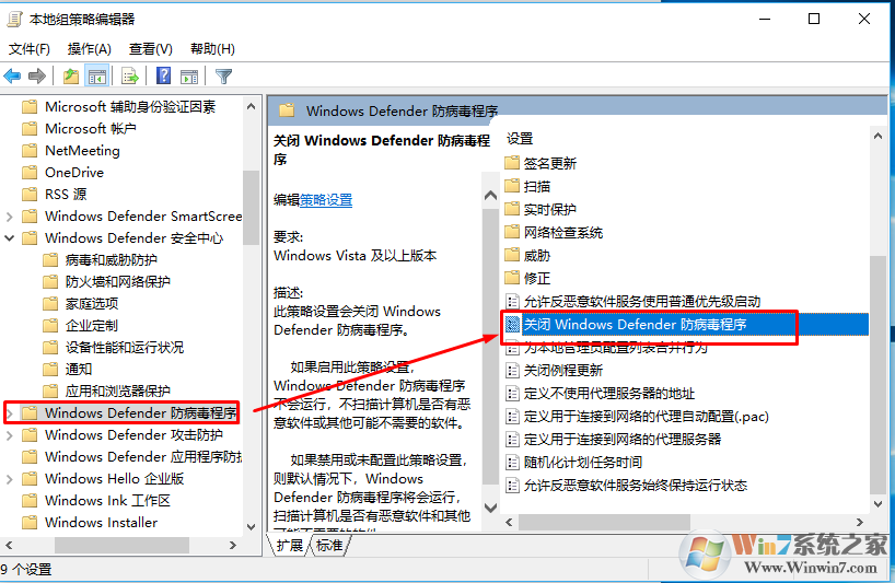 2、依次展開計算機配置——管理模板——Windows組件——Windows Defender