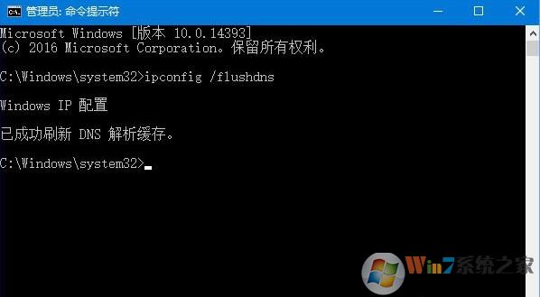 2、接著在擇命令提示符(管理員) 打開后輸入:ipconfig /flushdns ,(這個命令的功能是刷新DNS緩存)如圖所示: