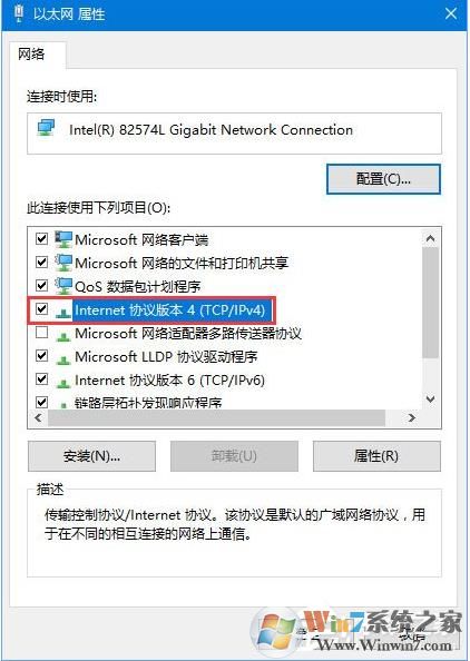 4、此時在彈出窗口中找到【Internet 協(xié)議版本4 (TCP/IPv4)】,選中后點擊右下側(cè)屬性,或者雙擊打開;