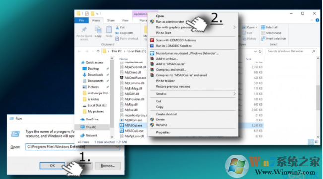 1.導(dǎo)航到C:\\ Program Files \\ Windows Defender目錄。為此,您可以按Windows鍵+ R,粘貼C:\\ Program Files \\ Windows Defender修補程序,然后單擊確定。