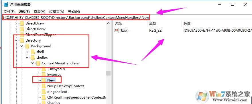 3、在ContextMenuHandlers展開項(xiàng)找到:New,左鍵單擊:New,如果沒有New,右鍵ContextMenuHandlers--新建--項(xiàng),命名為New