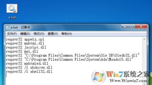 2、在排除電腦病毒導(dǎo)致電腦磁盤打不開的情況下,可能是電腦相關(guān)組件注冊信息丟失所導(dǎo)致。我們可以利用記事本創(chuàng)建一個名為“a.bat”的文件,輸入以下內(nèi)容: