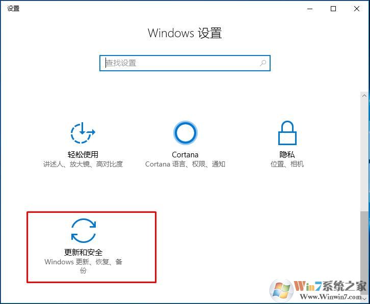 2、然后選擇更新和安全;