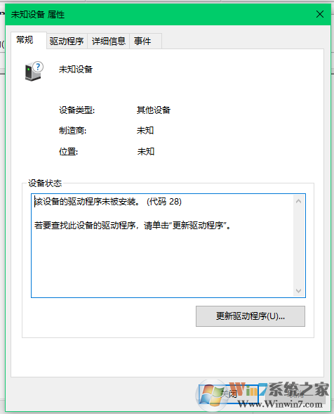 2、雙擊未知的設(shè)備,在屬性窗口選擇更新驅(qū)動(dòng)程序。