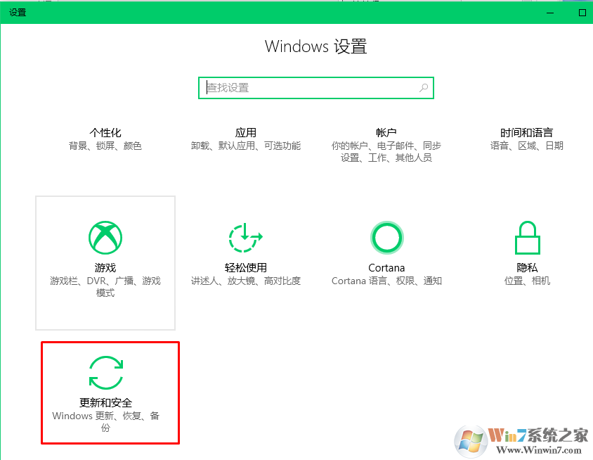 3、點擊贏鑰匙+ S - >選擇更新和安全 - >點擊檢查更新