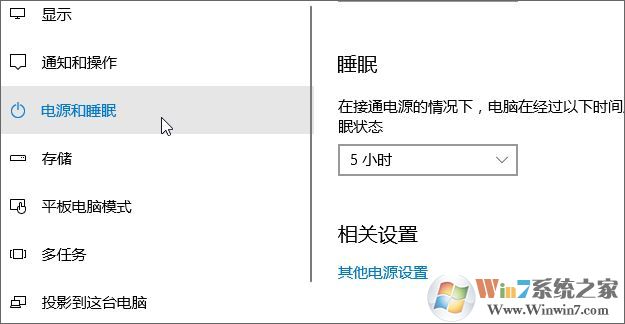 第二步、在系統(tǒng)窗口,點(diǎn)擊切換到“電源和睡眠”選項(xiàng)卡,然后在右側(cè)窗口找到并點(diǎn)擊“其他電源設(shè)置”;