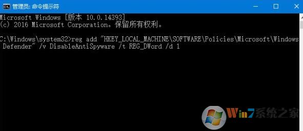 reg add "HKEY_LOCAL_MACHINE\SOFTWARE\Policies\Microsoft\Windows Defender" /v DisableAntiSpyware /t REG_DWord /d 1