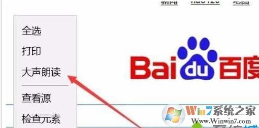 除了通過主菜單打開大聲朗讀功能外,我們也可以右鍵點擊網(wǎng)頁,然后在彈出菜單中點擊“大聲朗讀”菜單項來啟用大聲朗讀功能。