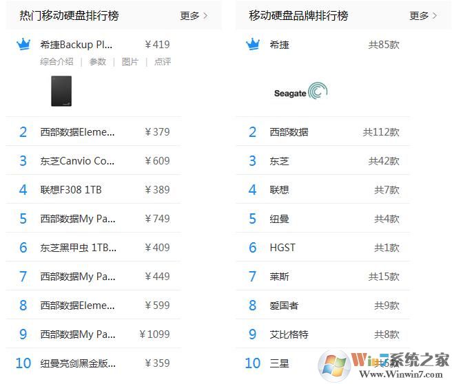 從2017年最新排行數(shù)據(jù),我們可以看出十大受歡迎的移動硬盤品牌分別是: