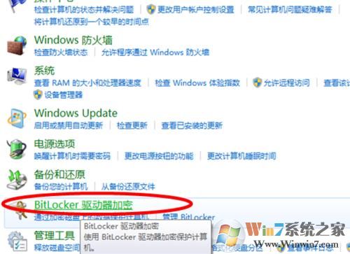 2、找到【Bitlocker驅(qū)動器加密】選項,打開它;找到移動設(shè)備,點后面的【啟用Bitlocker】;