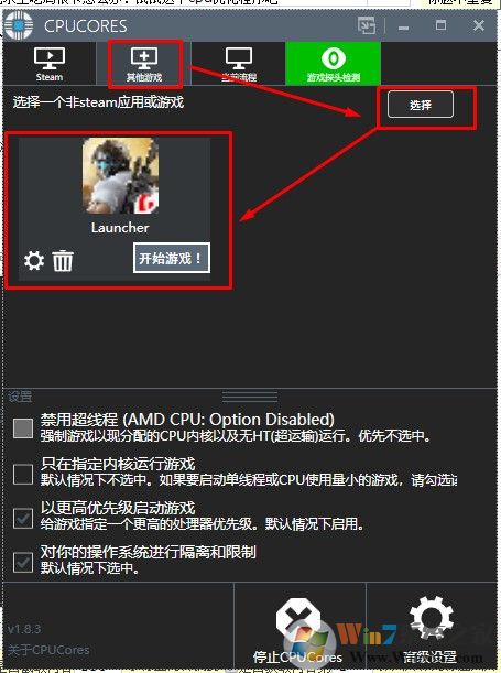 3:選擇steam游戲點(diǎn)擊運(yùn)行即可,軟件會(huì)自動(dòng)為我們選擇cpu優(yōu)化方式。