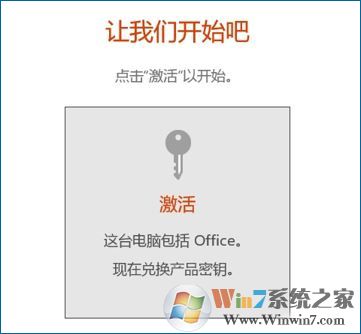 2、此時(shí)會(huì)彈出激活按鈕,會(huì)提醒您“這臺電腦包括Office”,需要進(jìn)行激活,如圖: