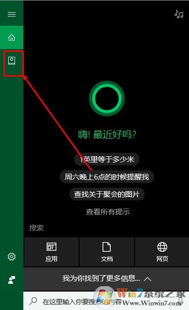 1、點擊小娜搜索框,左側(cè)三個圖標選擇筆記本。