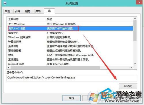 2、在系統(tǒng)配置工具,下面選擇點(diǎn)擊更改UAC設(shè)置然后再點(diǎn)擊啟動(dòng)。