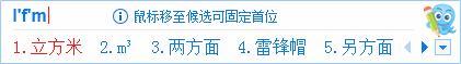 2、然后打出立方米的拼音 lifangmi ,然后按 + 號 翻頁找到 后選擇即可!