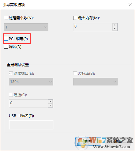 4、在引導(dǎo)高級(jí)選項(xiàng)中,取消勾選PCI鎖定,然后點(diǎn)擊確定即可。