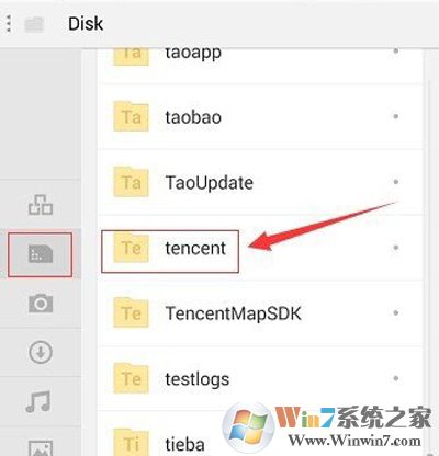2、打開手機(jī)的根目錄,找到“tencent”。