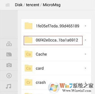 4、點擊“MicroMsg”打開,找到如圖所示的這個文件夾,也就是名字最長的那一個文件夾,找不到的小伙伴可以把文件夾名字比較長的都打開來看看。