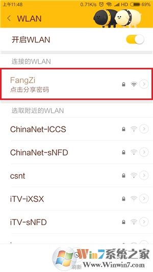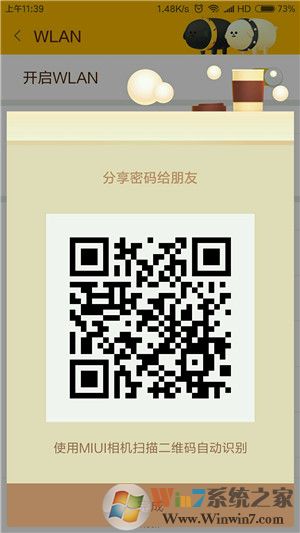 3.若希望查看通過WiFi萬能鑰匙連接的熱點密碼,MIUI系統(tǒng)可以直接進入系統(tǒng)設(shè)置,并在“網(wǎng)絡(luò)和連接”一欄中點擊“WiFi”項,或在下拉任務(wù)欄中長按WiFi功能開關(guān),進入系統(tǒng)熱點連接界面。然后在“連接的WiFi”一欄中點擊該WiFi熱點名稱,會彈出其無線密碼的二維碼圖片。