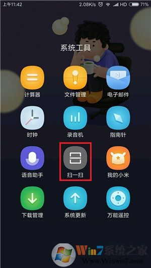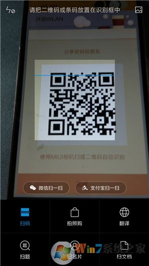 此時可以使用其他手機掃描該二維碼,或?qū)⑵聊恢苯咏貓D(按音量下鍵+電源鍵、任務(wù)鍵+電源鍵或下拉任務(wù)欄中的截屏按鈕即可),然后在桌面上找到并打開“掃一掃”圖標(默認在“系統(tǒng)工具”文件夾中),點擊右上角的“相片”圖標,然后再相冊中打開“截屏”文件夾并選擇該截圖,最后在掃描結(jié)果頁面中,點一下該熱點密碼后面的一串星號,即可將其顯示出來。
