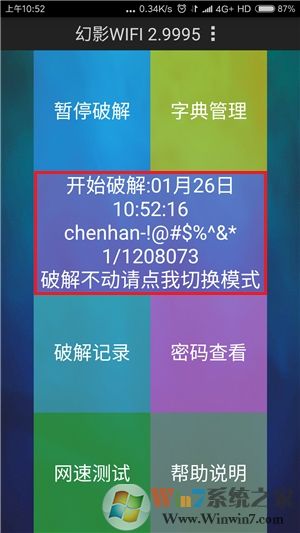 2.如果在破解過程中突然停住不動,請檢查該熱點信號是否存在或變?nèi)?,亦可記下波?shù)(起始破解行數(shù)),并點擊第二行藍紫色區(qū)域,切換模式后退出程序,重新運行并繼續(xù)破解即可。