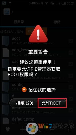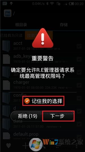 ①直接彈出警告提示界面,此時勾選“記住我的選擇”,并點擊四次“下一步”和一次“允許ROOT”按鈕。